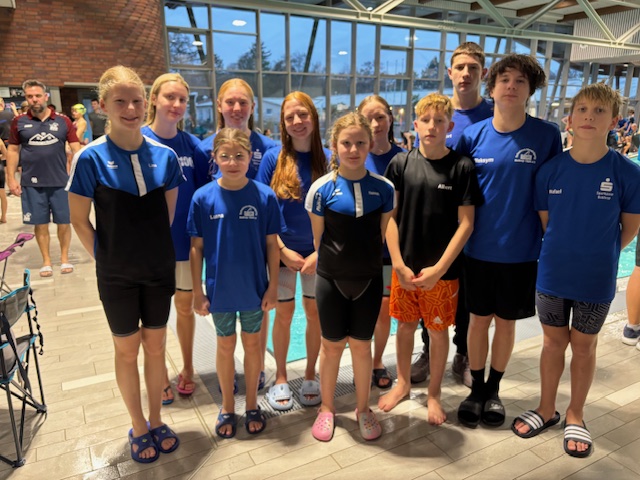 „Gemeinsam mit Hai-Speed ins Ziel!“ – Mit diesem Motto startete das Kids Cup Team der Schwimm-Vereinigung 1924 in die Saison 2025. Bei dem landesweit ausgetragenen Kids Cup handelt es sich um einen Mannschaftswettbewerb, bei dem in diesem Jahr die Jahrgänge 2016 bis 2019 an den Wettkampfsport herangeführt werden. Ausschließlich in Staffelform geht es in insgesamt sieben Disziplinen um Schnelligkeit, Koordination und Ausdauer. Bis zum Herbst werden drei Vorrundenbegegnungen ausgetragen. Die zwölf besten Teams auf Bezirksebene qualifizieren sich dann für das Bezirksfinale und die besten zwanzig Teams aus allen Bezirksfinalen dann für das abschließende Landesfinale.